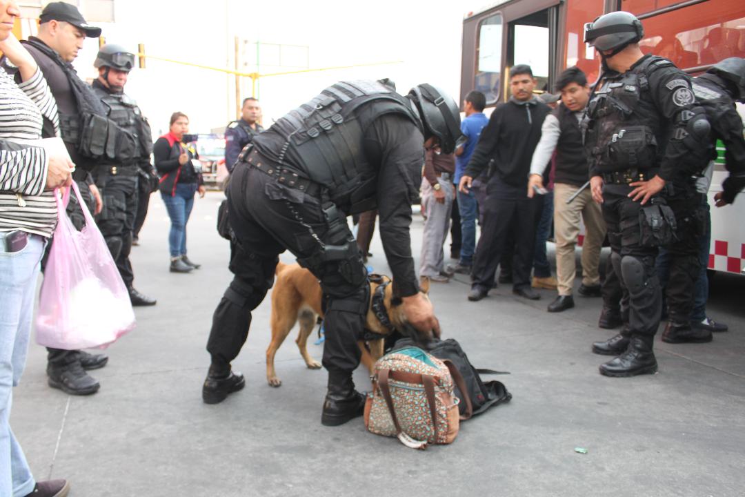 Elementos del Grupo de Operaciones Especiales GOE con apoyo de la policía K9 y de la vigilancia aérea, en conjunto con la policía municipal de Nicolás Romero, realizaron operativos de presencia, vigilancia y revisión a personas que viajan en transporte público.